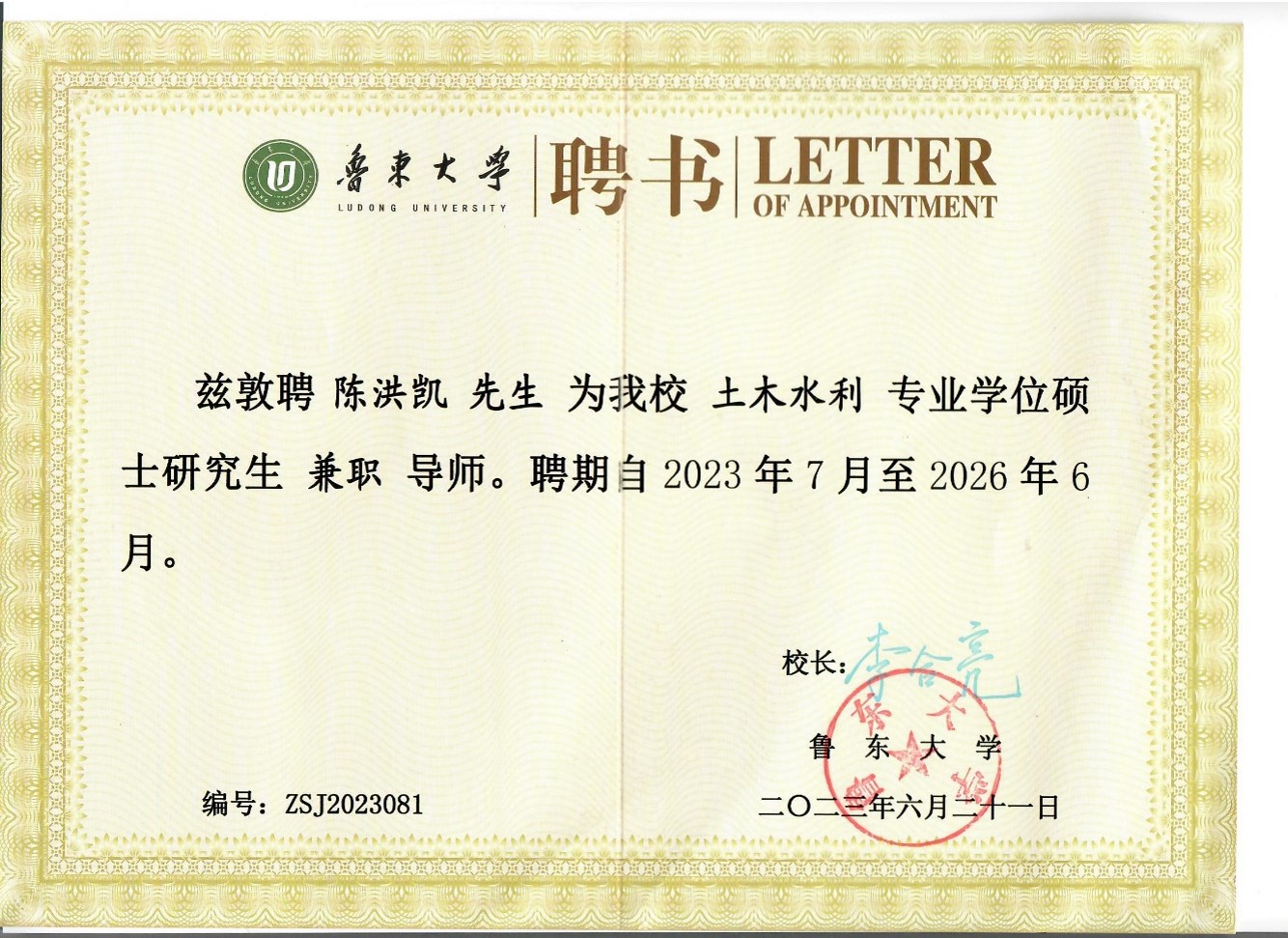 YABO鸭脖官网俄罗斯自然科学院外籍院士陈洪凯教授受聘鲁东大学土木水利专业硕士生导师