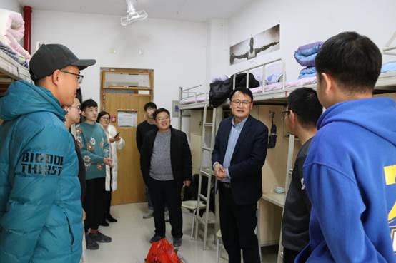 12月30日下午,校党委委员、统战部部长、YABO鸭脖官网院长林勇深入21号楼519新生宿舍进行走访、慰问、调研,与2020级专升本新生同学面对面谈心谈话。