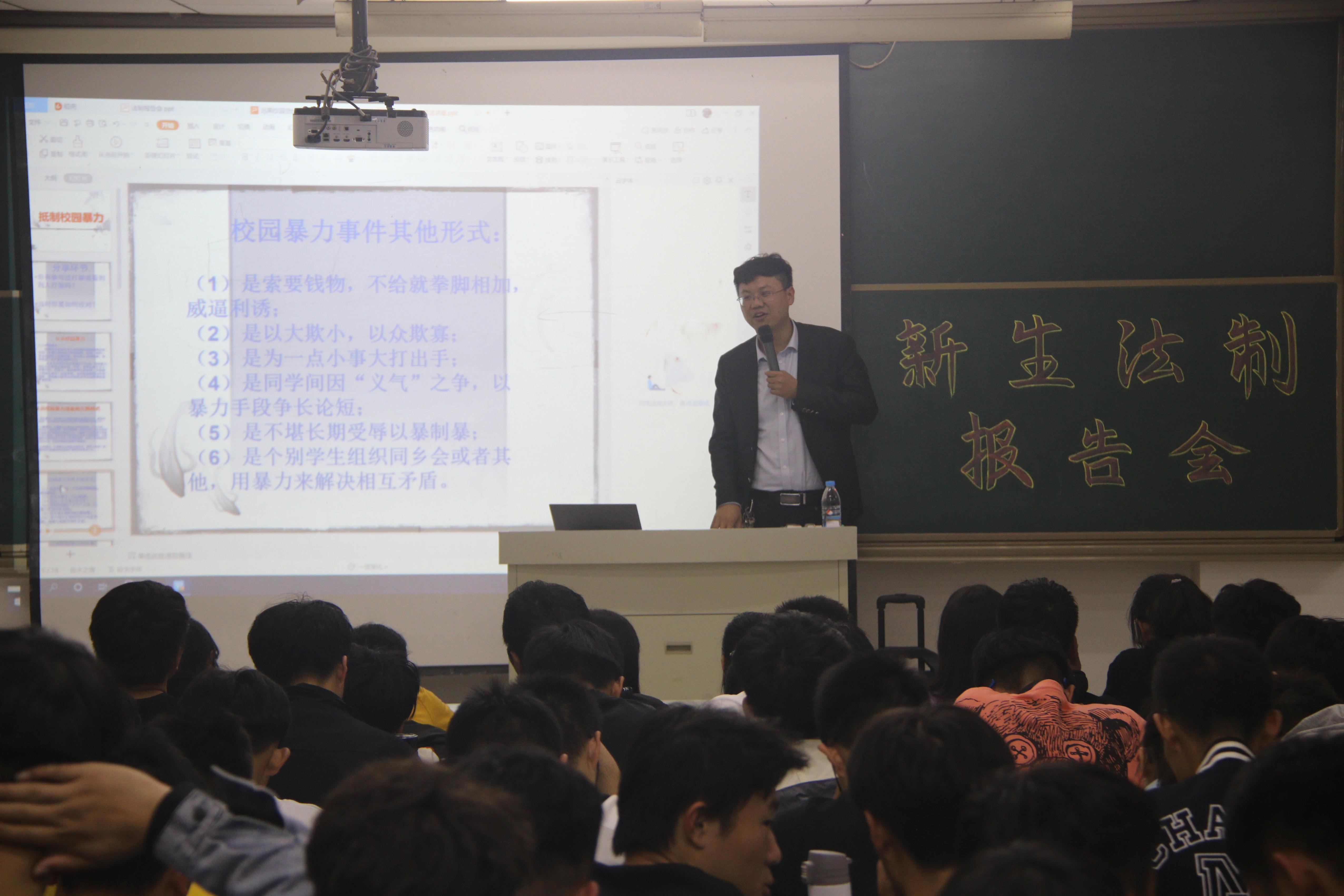 为进一步增强学生的法律意识和安全意识,建设平安校园、和谐校园,10月27日晚7:00,YABO鸭脖官网特邀山东龙头律师事务所董飞律师来校举办法制报告会,YABO鸭脖官网2020级全体新生现场聆听报告。