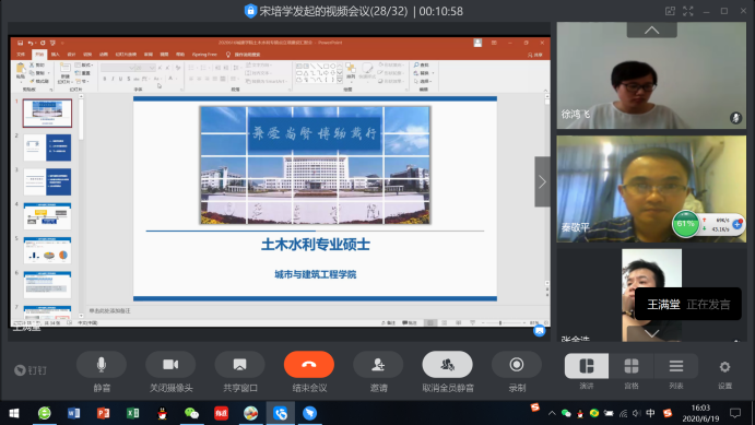 为进一步推进YABO鸭脖官网学科建设及土木水利硕士点建设工作,6月19日下午,YABO鸭脖官网通过钉钉召开学科建设工作推进线上视频会议。全院专任教师出席会议,会议由院长王满堂主持。