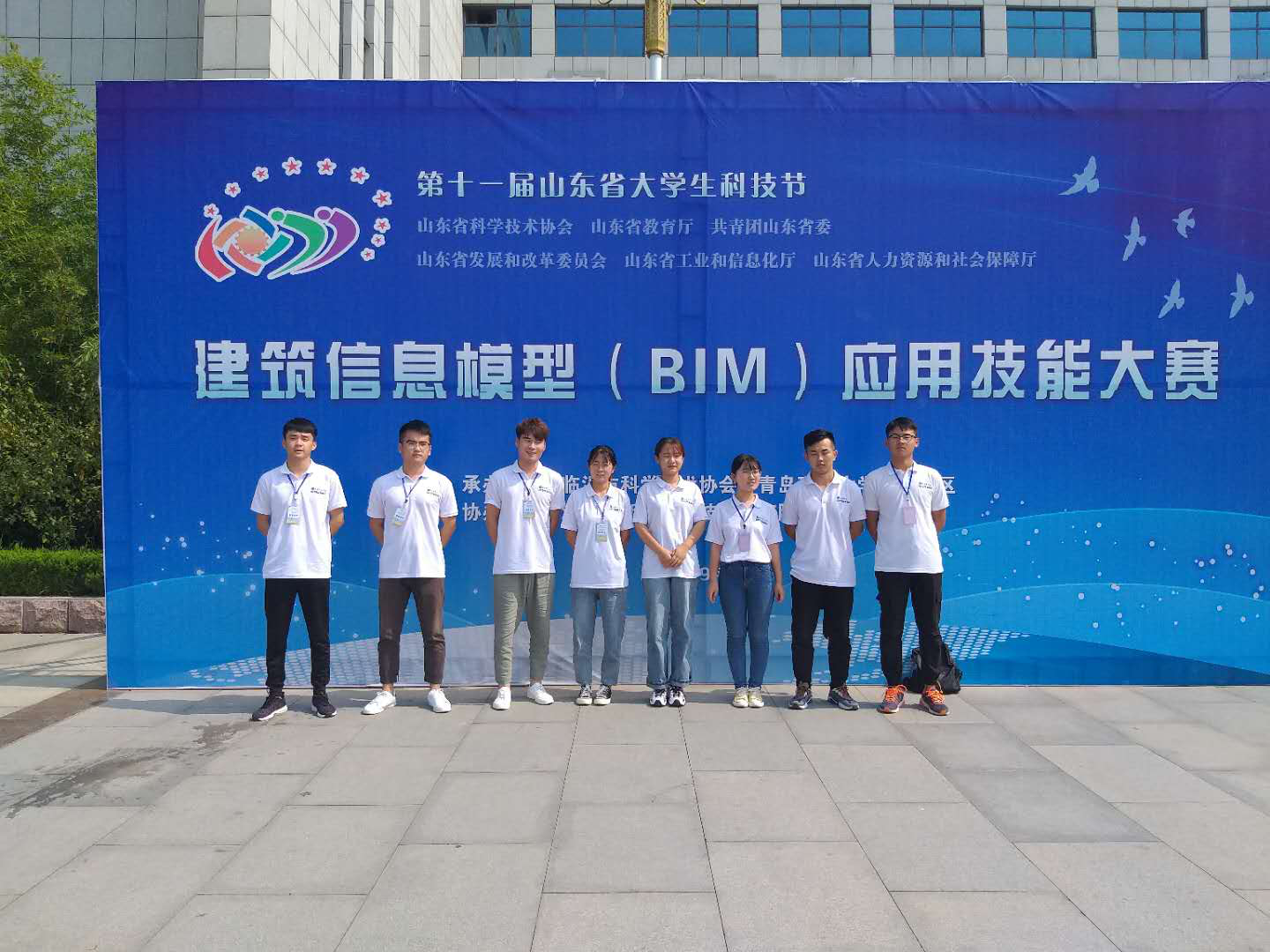 本次大赛由山东省科学技术协会、山东省教育厅、共青团山东省委、山东省发展和改革委员会、山东省工业和信息化厅、山东省人力资源和社会保障厅主办,实现了高校建筑类专业之间的BIM协同,增强了学生实践与创新能力。决赛共设高职组、本科组,最终由王吉业、孙法印老师指导的朱德斌、黄梅、高猛强、张念宝同学获得本科生组工程造价BIM 三等奖1项,工程施工BIM 三等奖1项。