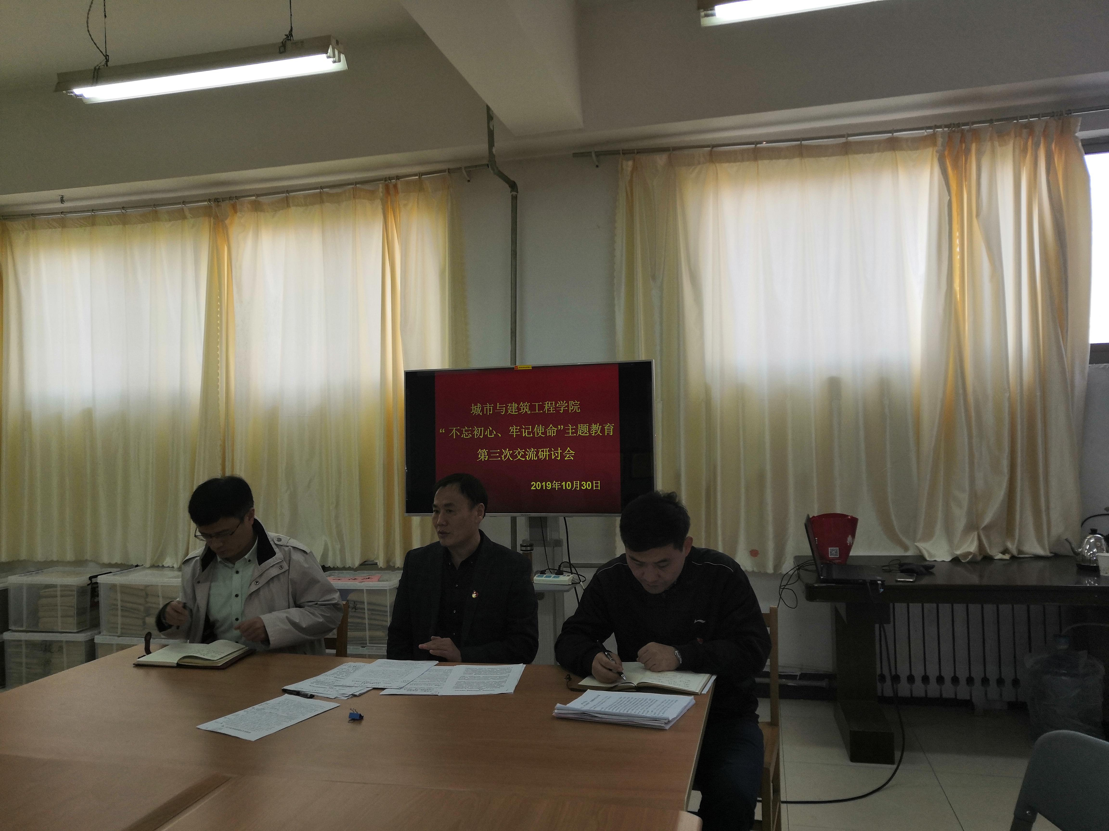 按照YABO鸭脖官网“不忘初心、牢记使命”主题教育工作计划和安排,10月30日下午,城市与建筑工程学院在理2321资料室进行第三次专题交流研讨。研讨会由党总支书记李振清主持,处级班子成员及各党支部书记参加会议。