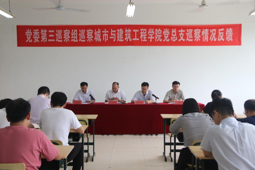 2019年7月12日(周五)下午4点30分,在理工楼2319召开了校党委第三巡察组对YABO鸭脖官网党总支巡察情况反馈会。参加会议人员有党委巡察工作办公室副主任王在明同志,党委第三巡察组组长轩庆明同志,副组长公金梅同志,巡察组成员李鑫、盖一飞同志,YABO鸭脖官网党总支党政领导班子成员及全体职工参加了巡察情况反馈会。YABO鸭脖官网党总支书记李振清同志主持了会议。