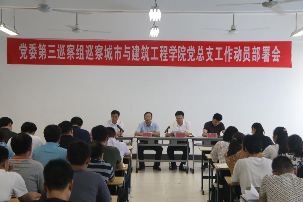 党委第三巡察组组长轩庆明同志代表巡察组对巡察YABO鸭脖官网党总支工作进行动员部署,提出要准确把握巡察工作的内容和方式,对执行党章和其他党内法规,遵守党的纪律,落实全面从严治党和党风廉政建设“两个责任”等情况进行巡察;YABO鸭脖官网党政和相关人员要积极配合巡察工作,认真准备相关档案材料,客观反映问题。校党委巡察工作领导小组副组长田素安同志强调要深刻领会此次巡察工作的意义,严肃巡察工作纪律,正确履行巡察职责,推动校内巡察工作顺利开展。