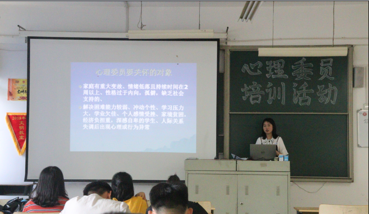 5月22日下午三点,在理工楼2318举办心理委员培训活动,各班心理委员和心理互助志愿者参加了此次培训。培训主要内容为介绍心理委员工作职责和大学生常见心理问题的表现及应对措施,心理委员和心理互助志愿者认真学习并做好学习笔记,以确保能更好地帮助同学解决日常生活中遇到的心理问题。
