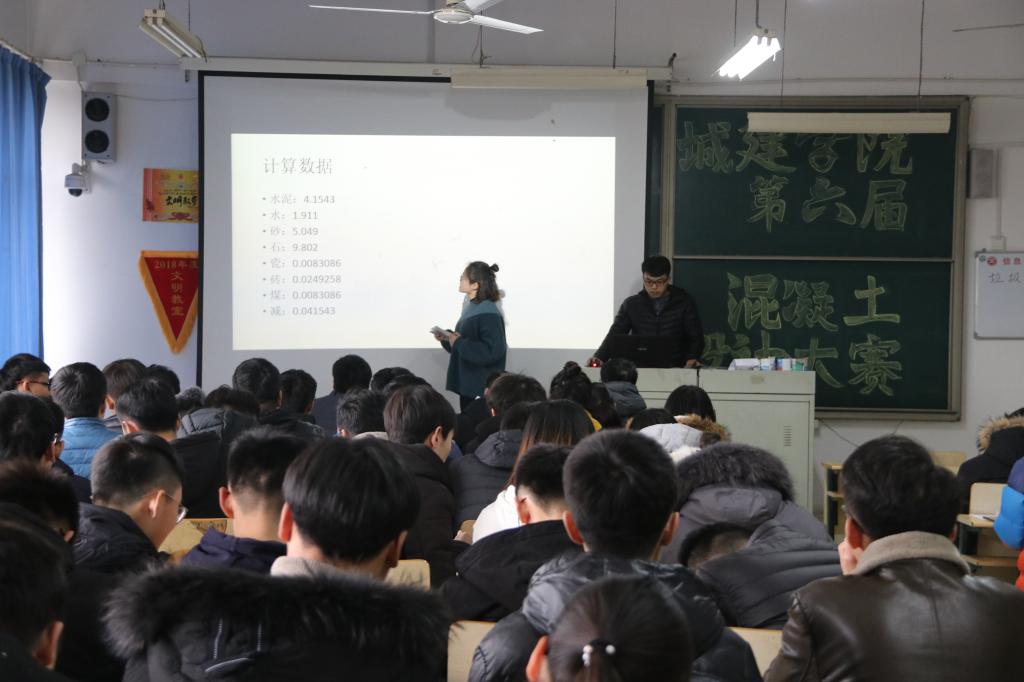 为培养和提高YABO鸭脖官网学生对土木工程材料的兴趣,提高学生对建材类仪器设备的操作使用能力,YABO鸭脖官网于2019年1月9日在理工楼2318举进行了YABO鸭脖官网第六届混凝土设计大赛答辩环节,2017级土木工程和专升本部分同学参加了此次答辩比赛。
