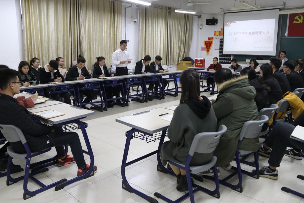 为了进一步推进党务建设,充实YABO鸭脖官网党员队伍,引导学生党员积极践行社会主义核心价值观,营造勤奋笃学、务实严谨的学习环境,发挥党员先锋模范作用,YABO鸭脖官网于12月5日下午在理工楼2516举办了组织发展暨转正大会,大会由杜珊珊书记主持,相关辅导员出席,全体党员、入党积极分子参加了本次会议。