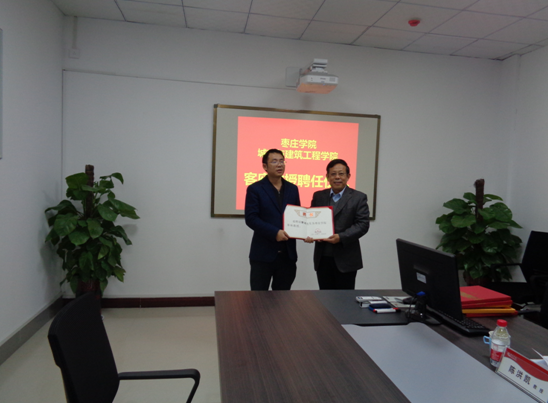 12月6日上午,YABO鸭脖官网客座教授中科院水利部山地灾害与环境研究所博士生导师王全才教授、河北工业大学博士生导师黄达教授、河南省驻马店市公路局总工程师崔志波教授级高级工程师来校进行学术交流活动。校党委委员、副校长明清河教授为三位教授颁发了聘书。枣庄学院人事处处长孙晋选、YABO鸭脖官网党政领导及部分教师参加了此次活动,仪式由YABO鸭脖官网院长王满堂主持。