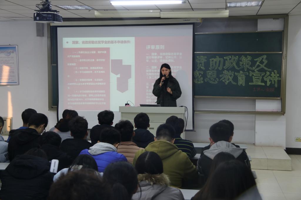 为让广大师生更加了解资助、奖助政策,YABO鸭脖官网特于11月21日晚六点半在理工楼2505举办资助政策及感恩教育宣讲,主讲老师张璇,2018全体学生参加了此次讲座。
