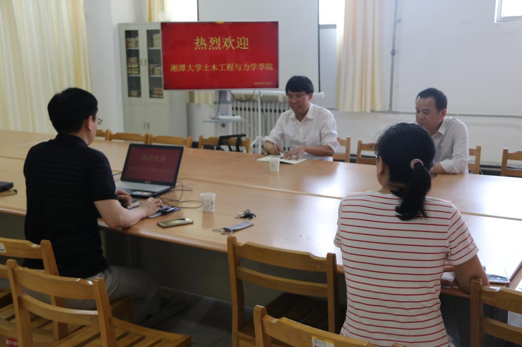 5月18日,湘潭大学土木工程与力学学院院长龙志林教授一行2人来YABO鸭脖官网考察交流。在YABO鸭脖官网资料室,龙院长就专业办学定位,近几年的发展情况等问题与学院领导教师进行了交流座谈。随后,龙院长针对行业中若干前沿热门问题为土木工程专业学生,进行了专题讲座。