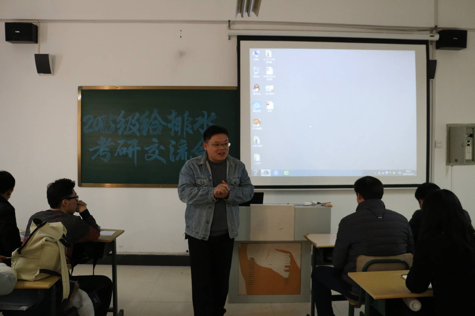 交流会主要分三个阶段进行,首先教研室主任贾广印介绍为了学院为保障同学们学习、备考,提供的一系列保障服务,并对同学们的学习、工作提出了期许。随后各位专任教师进行经验介绍,最后是随机提问发言交流。
