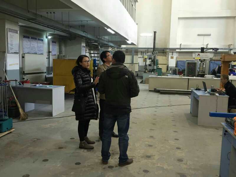 北京科技大学土木与资源工程学院副教授张举兵向YABO鸭脖官网的两位老师详细地介绍了其学院的专业特色和学科优势,并就专业建设和人才培养方面进行了讨论,都一致认为要注重学生的创新能力培养、实践能力培养和外语能力培养,学院教学要把最新的科技知识和科研成果反映到教学中,让学生掌握土木工程各主干学科的理论与实践前沿和发展动态。随后北京科技大学的张栋、刘钰老师带领两位老师参观了结构、岩土和材料实验室,并介绍了北京科技大学实验室的建设历程和未来的发展规划。张磊讲师提出未来的发展要以建设虚拟现实实验室为主,这种实验室可以使学生产生身临其境感觉的交互式视景仿真和信息交流,启发学生的思维,全面提高高校学生创新精神和实践能力。最后张举兵教授对新校区实验室规划与建设给出了许多有价值的指导意见,为新校区的设计安排工作做了更好的准备。