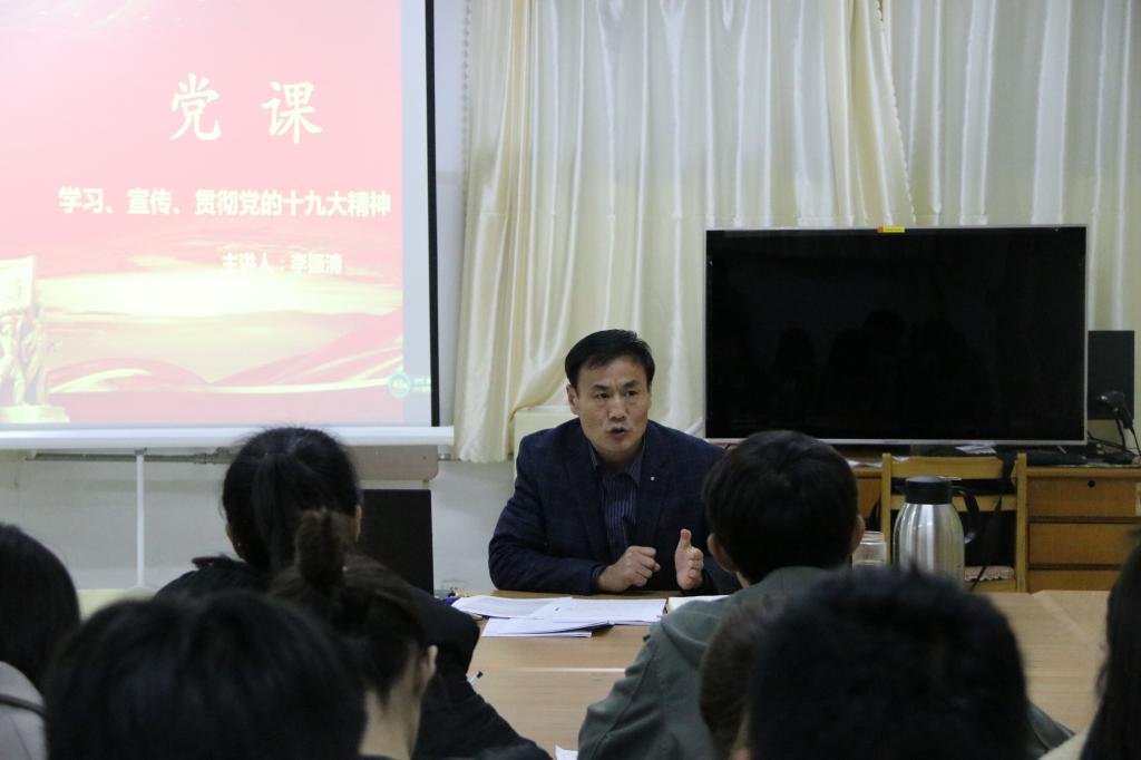 为深入学习宣传贯彻党的十九大精神,11月16日晚,YABO鸭脖官网在理工楼2321开展了学习、宣传、贯彻党的十九大精神的党课活动,本次党课由院长李振清主讲,YABO鸭脖官网全体入党积极分子、学生干部参加了此次培训。