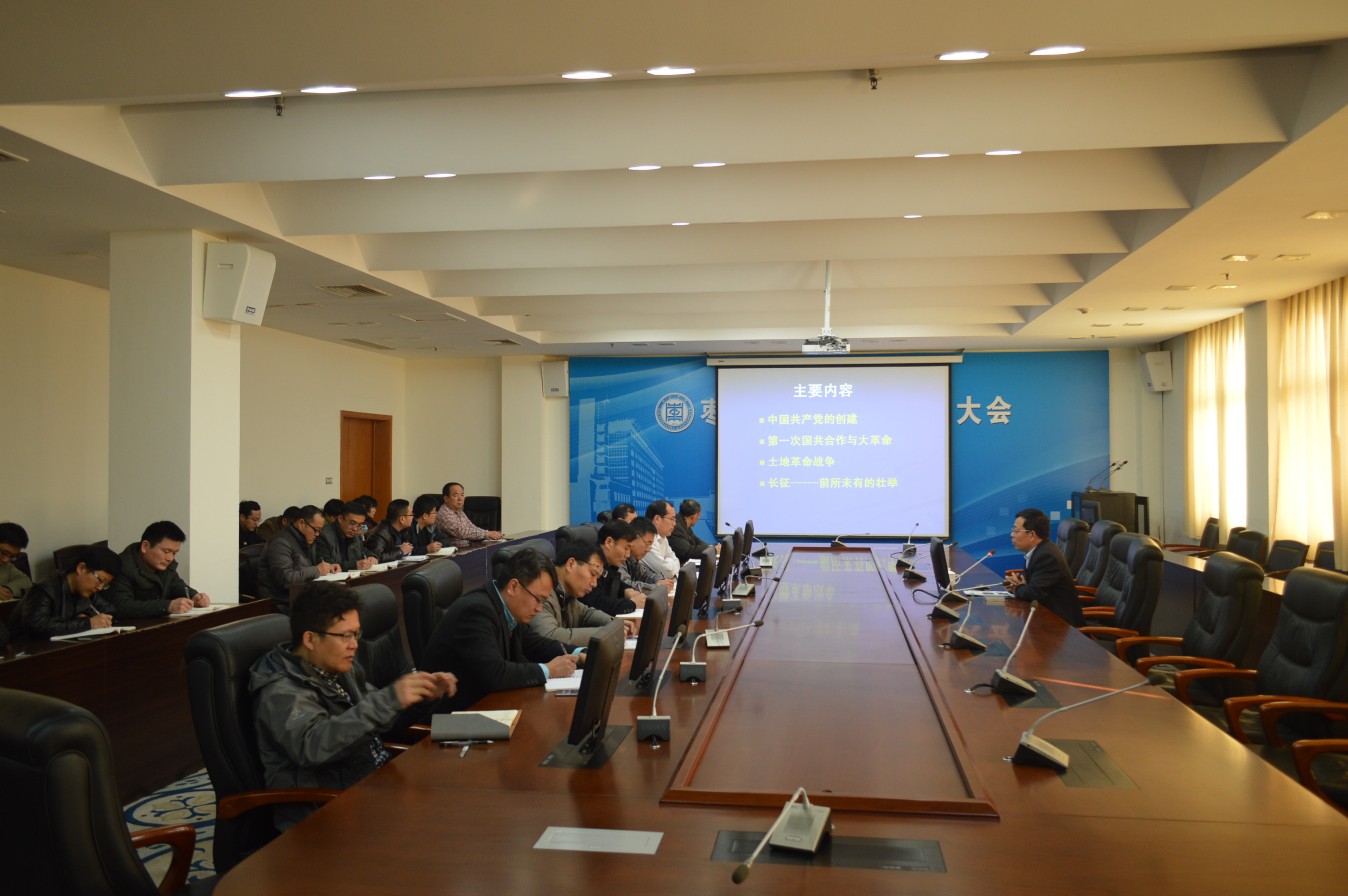 为进一步推进“两学一做”工作开展,深入学习领会党的十八届六中全会精神,12月2日,明清河副校长在综合楼三楼,为分管部门和YABO鸭脖官网开展了一次主题为“铭记党的历史,弘扬伟大精神”的党课教育。