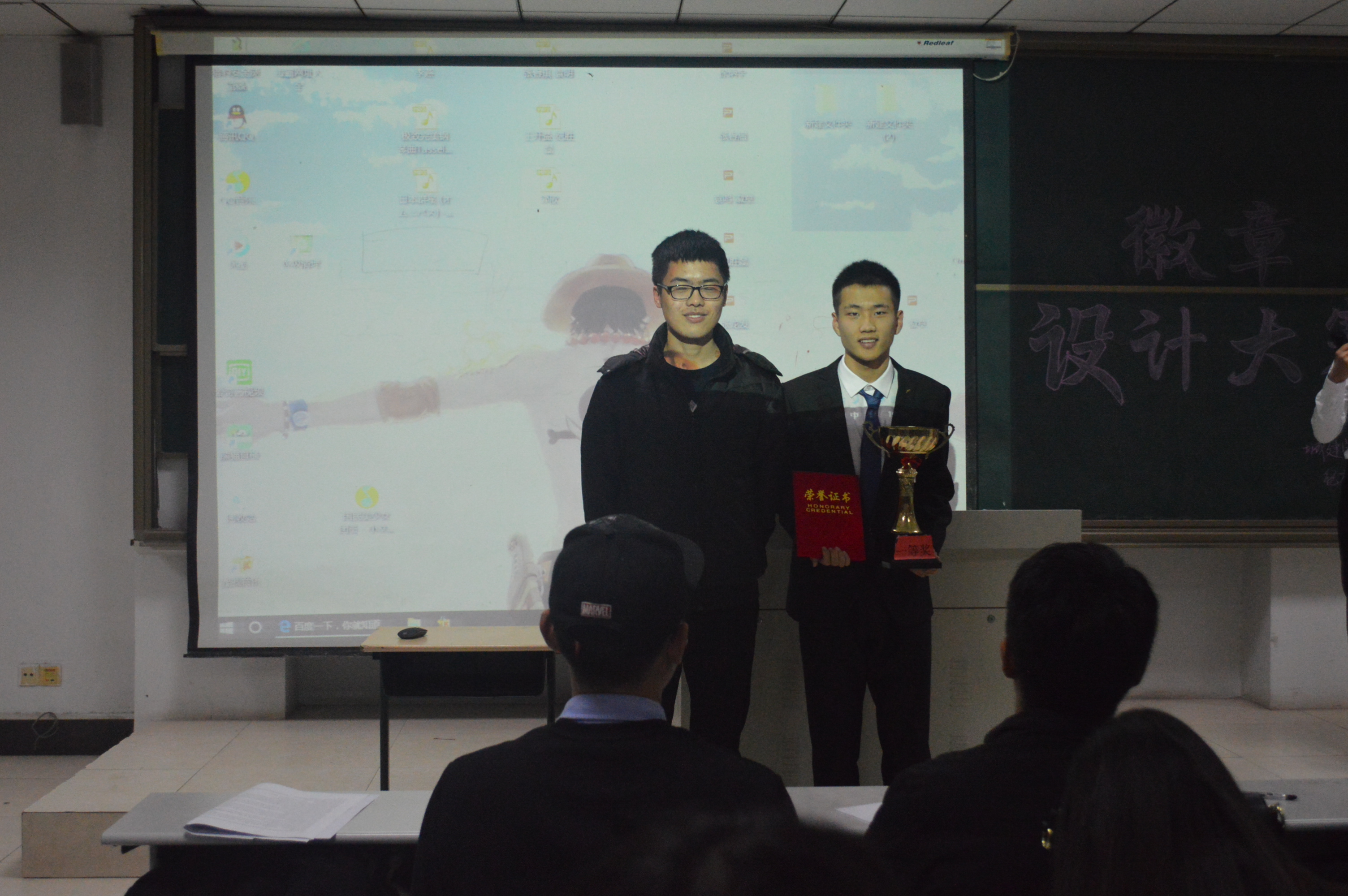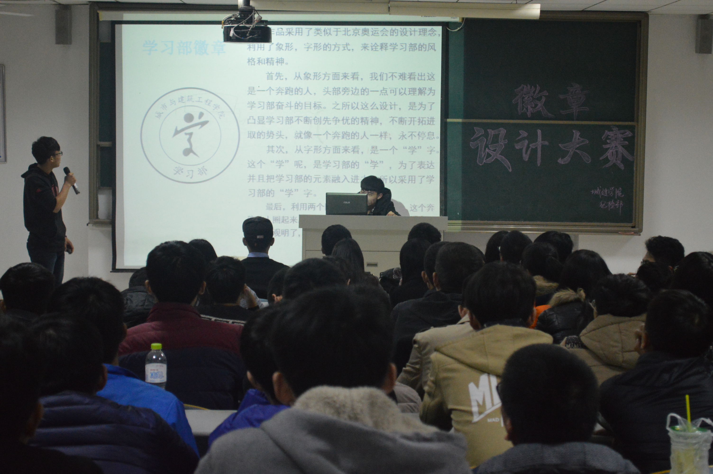 比赛伊始,主持人介绍了本次活动的主题和特色,即“城建与时俱进,设计彰显风采”,同学们充分激发匠心独运的灵感,各个团队利用自己的优势和创新才能来设计独具特色的徽章。各个团队或个人借助精美PPT的形式展示本队为学生会各部或本班设计的徽章,充满激情的在讲台上讲解徽章的设计理念和象征意义。每一个徽章都是设计者汗水与智慧的结晶,更是灵感创新能力的见证。各团队从各部特色出发,设计出了诸多丰富多彩的作品,有的团队用简单的线条和色彩搭配构成了令人眼前一亮的徽章,也有的团队利用专业特点设计出了独具特色的班徽,表达了自己对班级的热爱。经过现场激烈的角逐,纪胜磊团队荣获本次比赛的一等奖,徐彬宇和高雨两个团队获得此次比赛二等奖,更有多个团队获得了三等奖和优秀奖。
