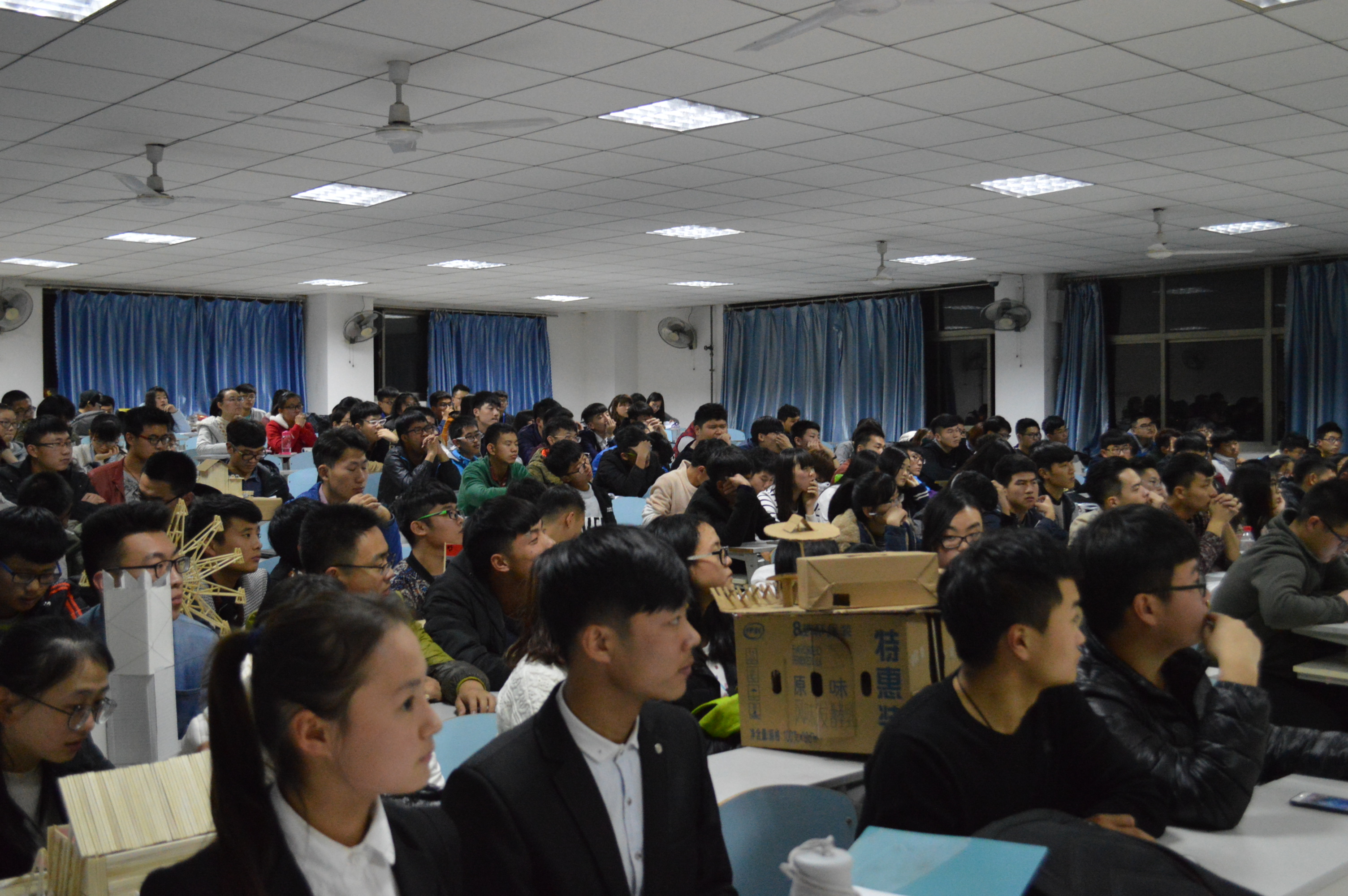为提高YABO鸭脖官网学生的环保意识,培养团队合作能力,11月20日,YABO鸭脖官网在2505举办废物利用建筑模型大赛。全体大一学生参加了此次活动。