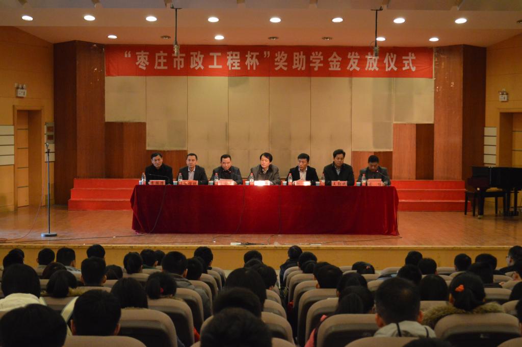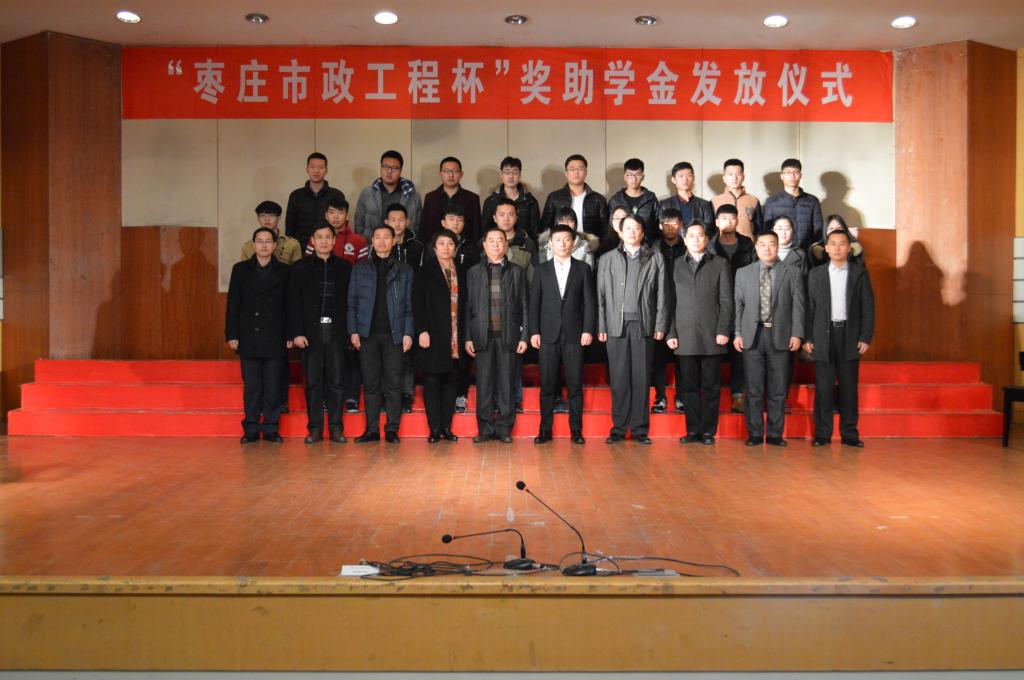 “枣庄市政工程杯”“基金”旨在帮助贫困大学生完成学业,由枣庄市政工程股份公司出资赞助4万元,用于奖励学习成绩优秀和家庭经济困难的学生。经过学院和企业认真审核,最终确定二十名品学兼优的学生作为本届“枣庄市政工程杯”奖助对象。