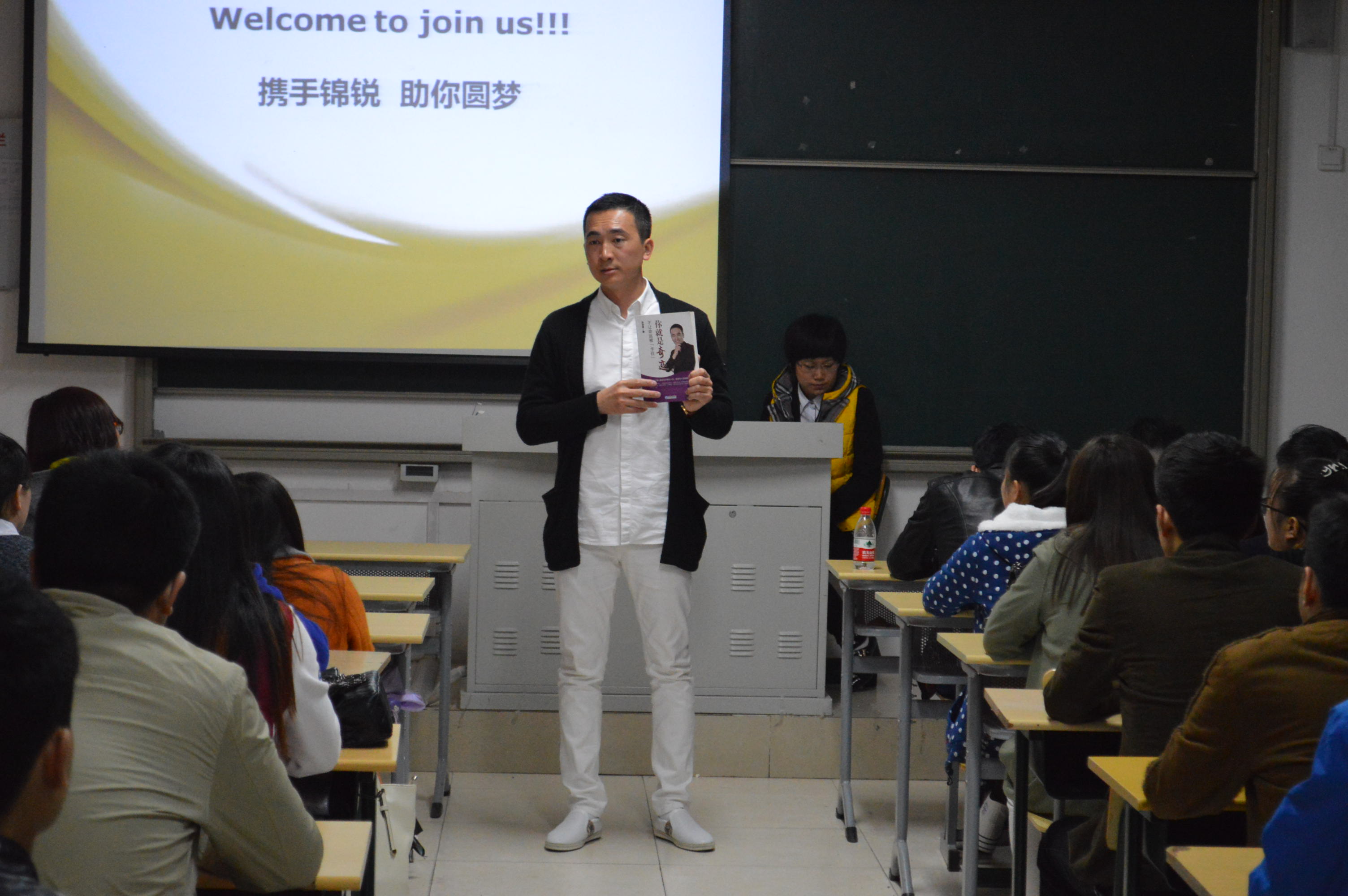 锦锐工作人员为学生们加油打气