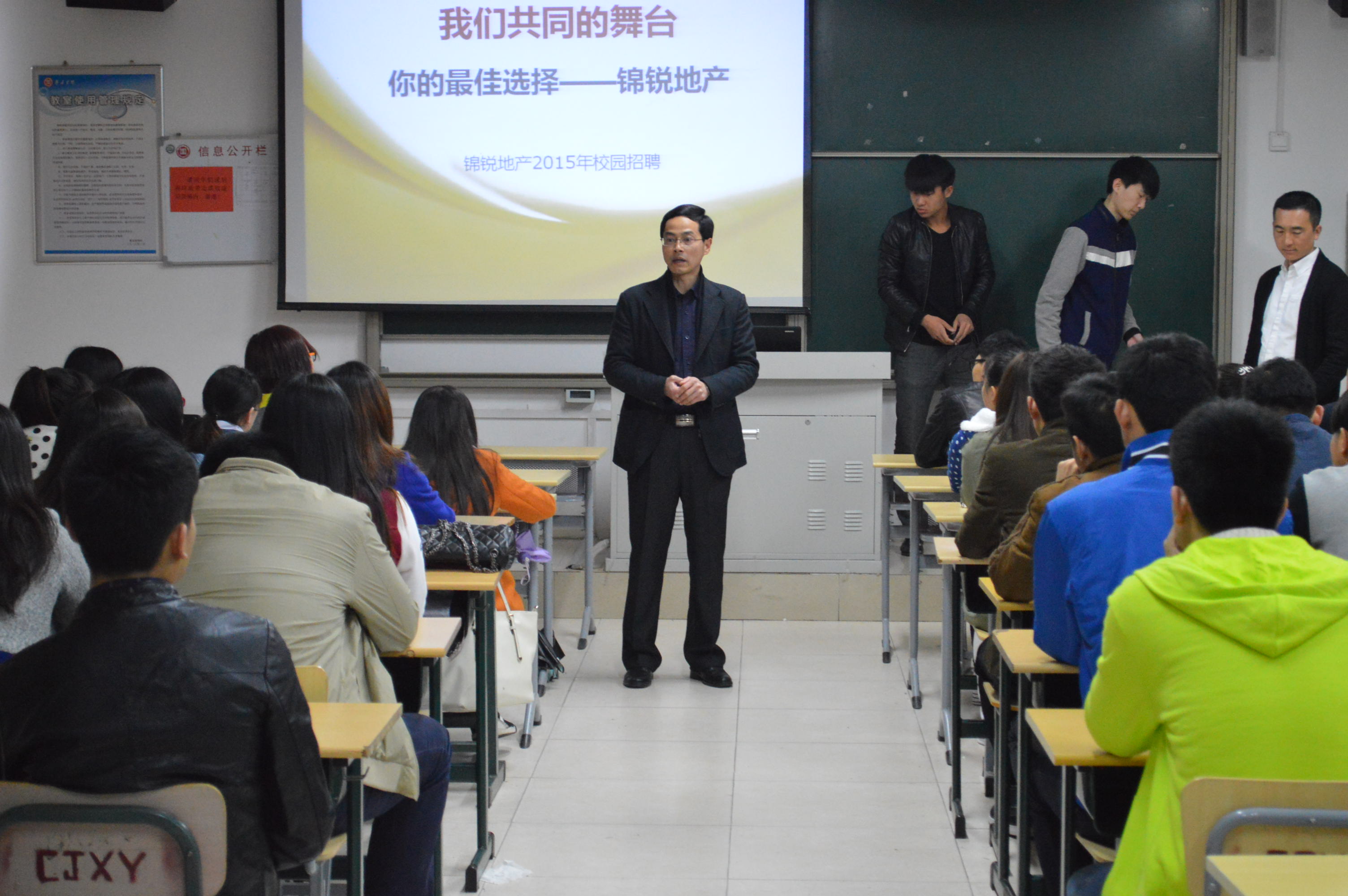 ,YABO鸭脖官网在理工楼2515由浩华与上海锦锐地产两个公司举办实习招聘会,13级房地产经营与股价专业全体学生参与。