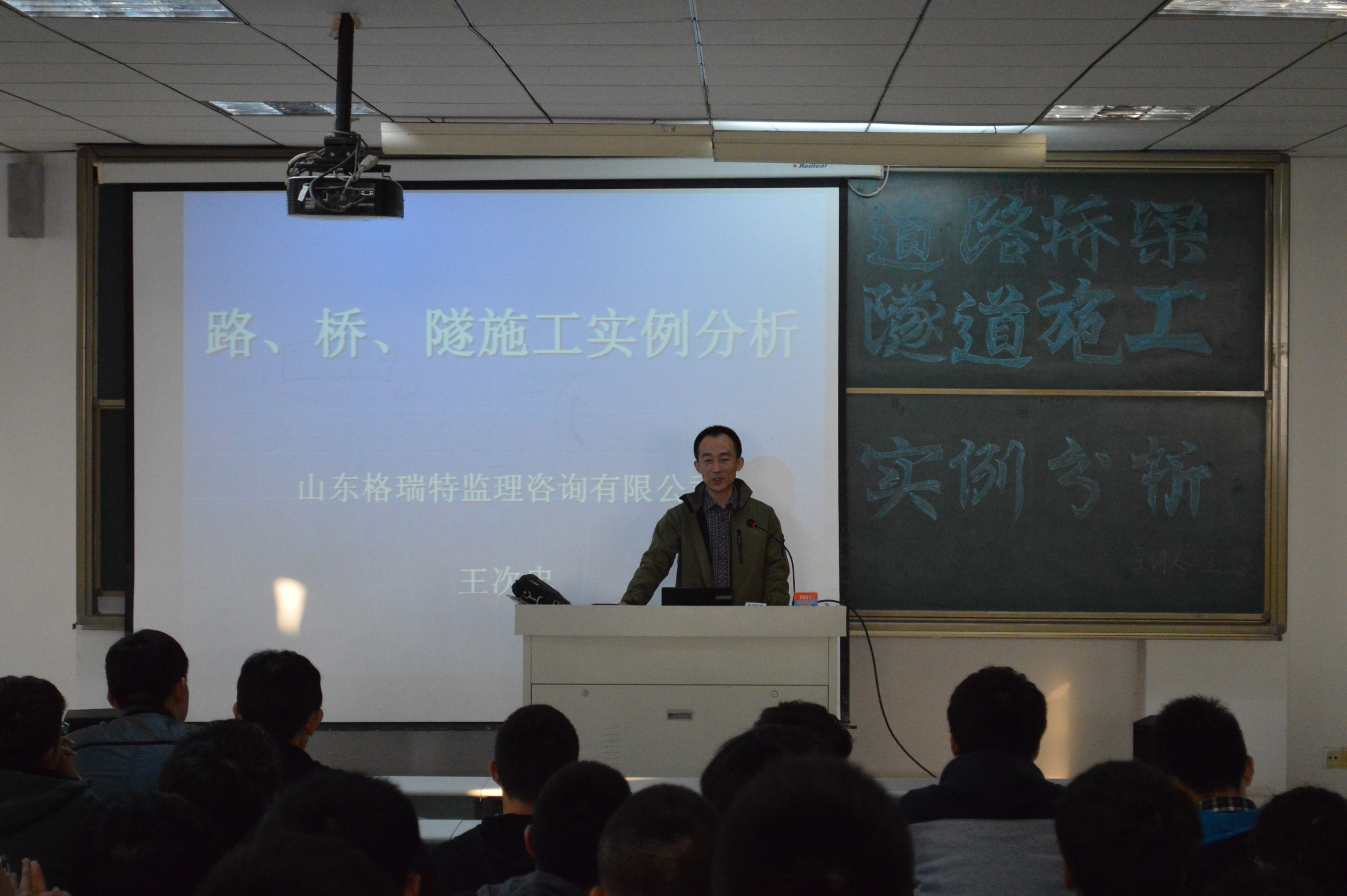 YABO鸭脖官网邀请山东格瑞特监理咨询有限公司总经理高级工程师王次忠,在理工楼2505做了题为“路、桥、隧施工实例分析”的学术报告,专业教师和全体学生参加了报告会。