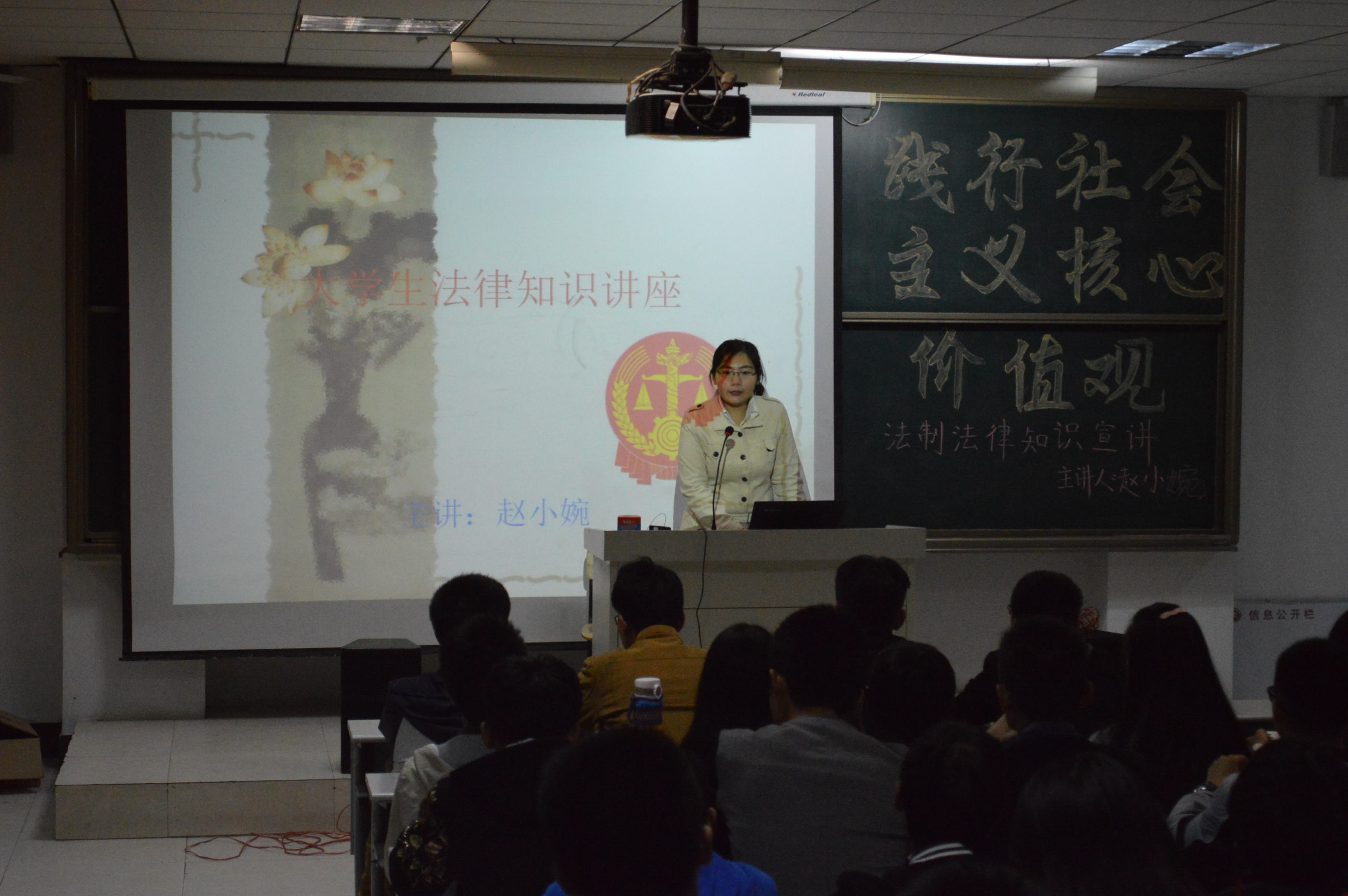 晚,YABO鸭脖官网在理工楼2505举行了法律法制知识讲座,赵小婉老师主讲,2014级新生、高年级部分学生参加了报告会。