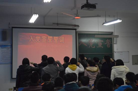 2014年1月2日,旅游学院与YABO鸭脖官网在理工楼2518教室举行入党宣誓仪式,YABO鸭脖官网学生党支部书记胡新华出席了大会,学生党员和入党积极分子共70余人参加了宣誓仪式。