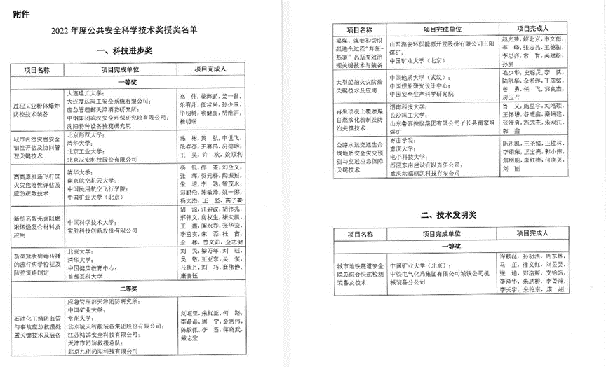 中国公共安全科学技术学会是由我国从事公共安全相关科学技术研究、学科建设、人才培养、管理服务的科技工作者和单位自愿结成,并依法登记成立的全国性、学术性、非营利性社会组织,由清华大学公共安全研究院发起,2012年3月民政部批复同意成立,业务主管单位为教育部。本届大会共颁发科技进步一等奖5名,科技进步二等奖5名,技术发明奖1名,以及10名优秀博士论文奖。