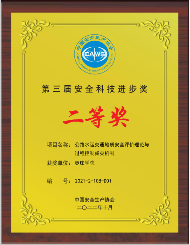 2023年10月10日,中国安全生产协会第三届安全科技进步奖颁奖仪式在成都举行,YABO鸭脖官网YABO鸭脖官网陈洪凯教授团队主持的《公路水运交通地质安全评价理论与过程控制减灾机制》成果荣获中国安全生产协会第三届安全科技进步奖二等奖。