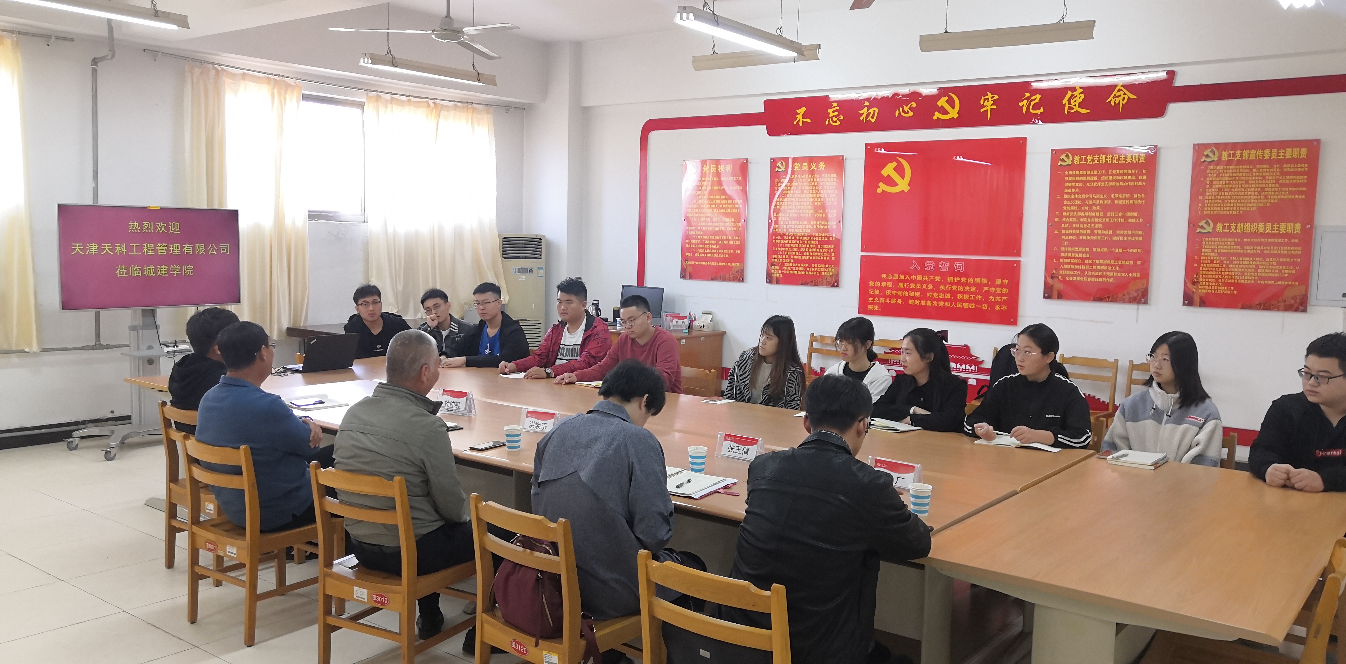 2020年10月22日上午,天津天科工程管理有限公司副总经理洪焕乐、杜仲凯一行四人来YABO鸭脖官网考察交流。YABO鸭脖官网党总支书记李振清、党总支副书记徐海波、就业指导教师、土木工程专业负责人及部分学生代表参加座谈会。
