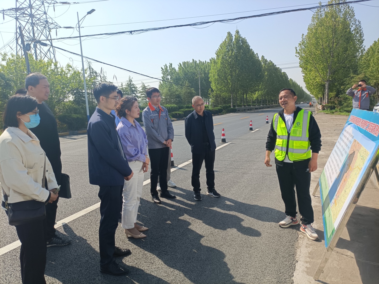 座谈会前,咸康彬带领查明一行实地参观了S238店韩南路在建项目。