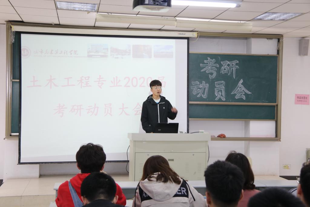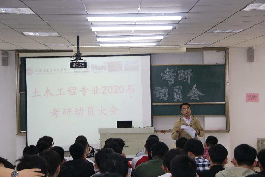 4月17日,YABO鸭脖官网召开土木工程专业2016级本科生和2018级专升本学生考研动员会,学院院长王满堂、教研室主任、专任教师和170余名学生参加。