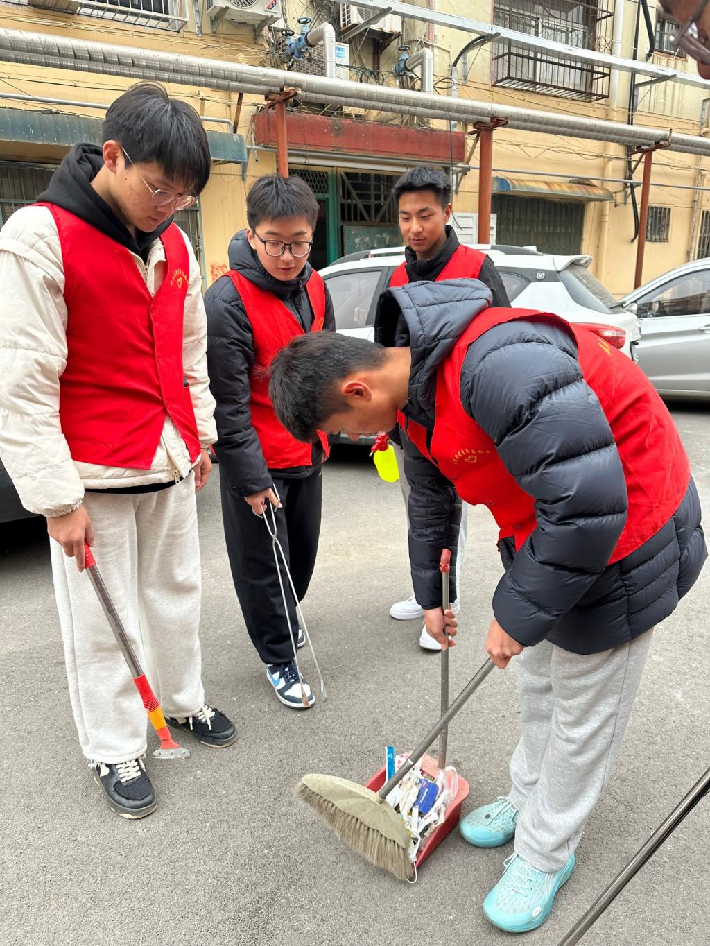 在志愿服务中,参与人员在社区中进行卫生打扫,清理街道垃圾,铲掉小广告等。本次志愿服务活动,是在学院老师与社区工作人员的监督和领导下进行的,为了安全起见由老师全程陪护。志愿服务结束后,清点人数并合影留念,收拾工具并归还。
