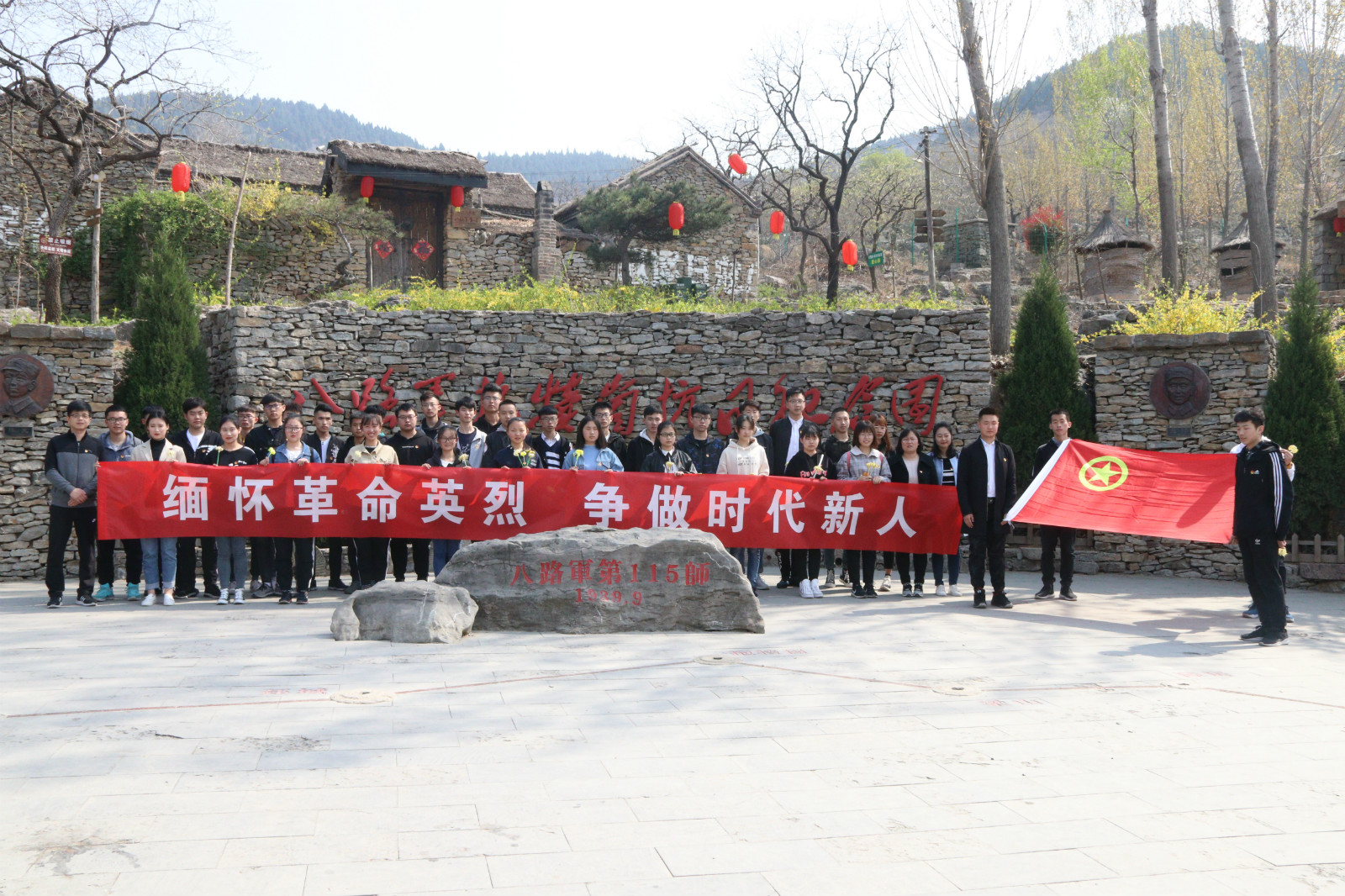 为缅怀革命先烈,传承民族精神,4月3日下午,YABO鸭脖官网、政治与社会发展学院共赴八路军抱犊崮抗日纪念园,联合组织开展了清明缅怀革命先烈活动。两院党员代表和团员代表参加了此次活动。