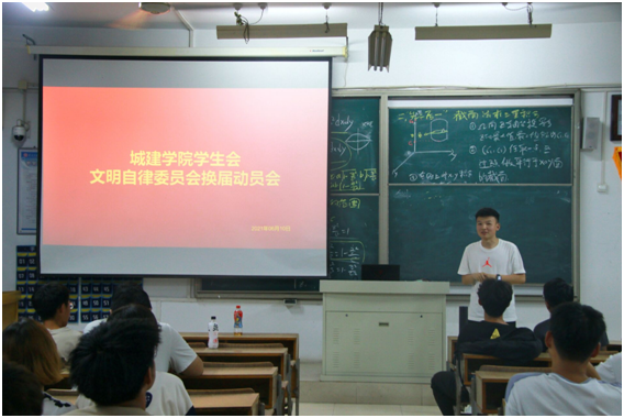 会议伊始,学生会主席李沅锴总结学生会与文明自律委员会的一年的工作情况,对志愿者一年的工作表示肯定与鼓励。紧接着,对本次换届的要求进行了详细的说明,并对学生会各部的职责进行了总结性的介绍。然后,副主席李宪硕对文明自律委员会一年的工作进行总结,对各部门的职责进行了详细介绍。紧接着,各部门分别对自己的职责与感悟进行了深刻的交流。