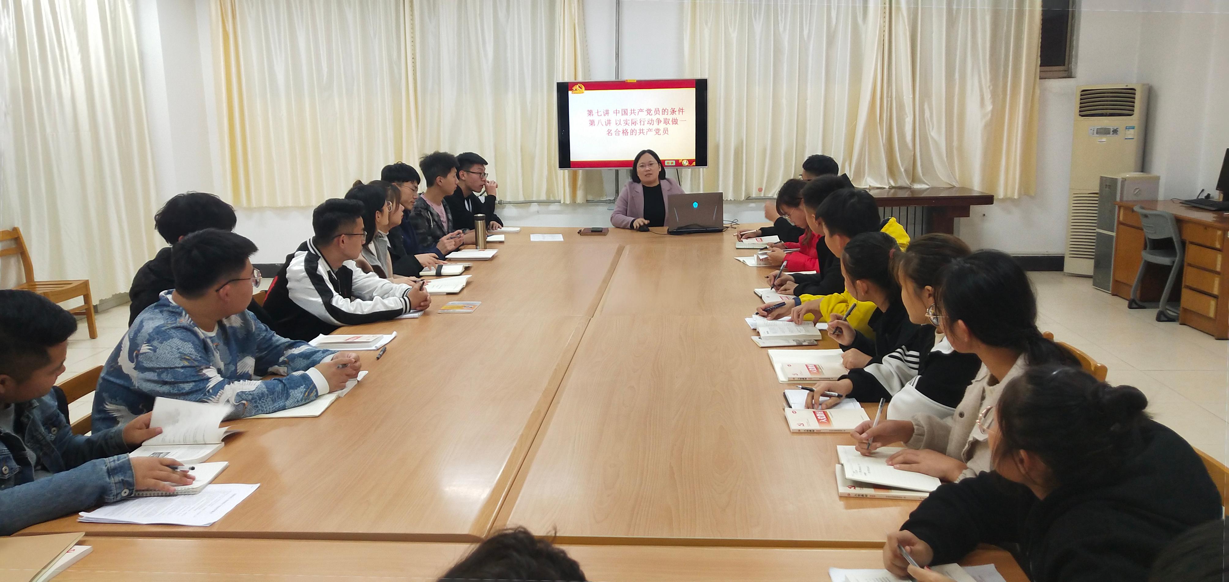 11月22日晚,YABO鸭脖官网在理工楼2321展开了2019年下半年入党积极分子党课培训第二讲。本次培训由学生党支部书记杜珊珊主讲,2019年下半年入党积极分子、部分学生干部参加了此次培训。