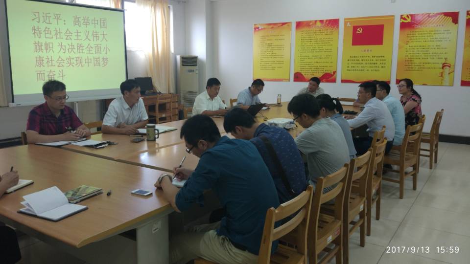 根据学校党委要求,YABO鸭脖官网党总支于9月13日主题党日活动,组织全体党员干部深入学习贯彻习近平总书记在省部级主要领导干部专题研讨班开班式上的重要讲话精神,进一步增强“四个意识”、坚定“四个自信”,始终做到思想到位、行动对标,全力做好当前各项工作,以优异成绩迎接党的十九大胜利召开。