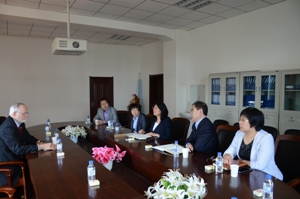李娟院长对James Holsinger教授的来访表示热烈欢迎,对其在促进中美高校间合作办学及学术交流做出的贡献表示感谢。刘晓冬副院长对学院的合作项目进行了介绍,并对今后拟开展的工作进行了充分的解释和说明。James Holsinger教授介绍了肯塔基大学威尼斯432888cam的概况,听取了学院各教研室的介绍。并与各教研室老师进行了为期两天的广泛交流,就研究生培养模式、课程设置、教学管理、论文发表、国际教育对接、学分互认等问题展开了讨论。双方就教师和学生的交流访问、科研项目合作等问题进行了深入交流,达成合作共识。
