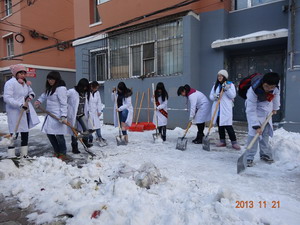 为深入学习宣传贯彻党十八大精神、团十七大精神,深化推进“我的中国梦”主题教育实践活动,发扬威尼斯432888cam学子“奉献、友爱、互助、进步”的志愿服务精神,保证居民出行安全,保障社区道路通畅,11月21日下午三点,威尼斯432888cam团委学生会组织了社区志愿扫雪活动。威尼斯432888cam二十多名学生志愿者联合测绘与勘查工程系的志愿者们走进桂林街道同光路西社区,共同实施本次志愿活动。